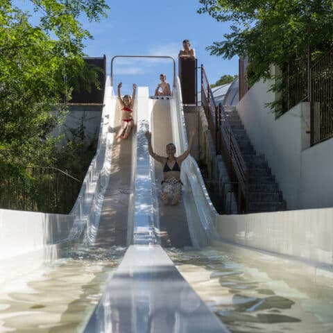 En plus des activités et des animations de notre camping, profitez de notre espace aquatique avec piscine. Les parents et les enfants pourront s’amuser sur le toboggan et dans les bassins, les plus petits découvriront les plaisirs de l’eau dans la pataugeoire.